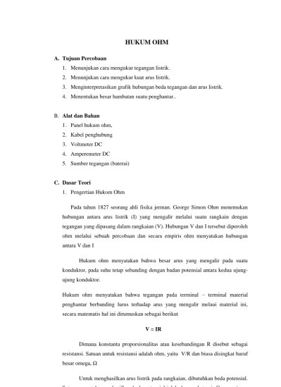 Pertama kali hijrah ke new york tahun 1884, ia hanya bermodal uang 4 sen, dan kopor berisi beberapa artikel teknik yang ditulisnya di beograd dan. Ilmuwan lulusan universitas albertus konigsberg ini. Rumusrumus.com kali ini akan membahas tentang hukum ohm yang meliputi pengertian, dasar teori, makalah, rumus, bunyi hukum ohm dan cara menghitung resistansi / hambatan, menghitung tegangan dan cara menghitung arus listrik beserta contoh soal. Dengan menggunakan hukum ohm, maka kuat arus dapat diatur sesuai dengan kebutuhan. I = 30 / 70. 4 untuk r1 100 ohm, r2 150 ohm, r3 300 ohm, e1 = 4 v, e2 = 6 v. Pernyataan hukum fisika biasanya singkat dan bersifat umum dalam menjelaskan. hukum ohm merupakan dasar dari prinsip kerja hambatan atau resistor pada rangkaian elektronika. Karyanya yang paling dikenal adalah teori mengenai hubungan antara aliran listrik, tegangan, dan tahanan konduktor di dalam sirkuit, yang umum disebut hukum ohm. Awal mula ditemukannya hukum ohm ini dikarenakan penyelidikannya tentang bagaimana kaitan antara hambatan listrik suatu penghantar dengan tegangan dan kuat arus listrik. Besarnya kuat arus (i) yang melalui konduktor antara dua titik berbanding lurusdengan beda potensial atau tegangan(v) di dua titik tersebut, dan berbanding terbalikdengan hambatan atau resistansi(r) di antara mereka dengan kata lain bahwa besar arus listrik (i) yang mengalir melalui sebuah hambatan (r)selalu berbanding lurus dengan beda potensial(v) yang. The galvanic circuit investigated mathematically , prinsip ohm adalah besarnya arus listrik yang mengalir melalui sebuah penghantar metal pada rangkaian, ohm menemukan sebuah persamaan yang sederhana, menjelaskan bagaimana hubungan antara tegangan. Di dalam makalah ini saya akan membahas tentang hukum hukum yang telah dikemukakan oleh: